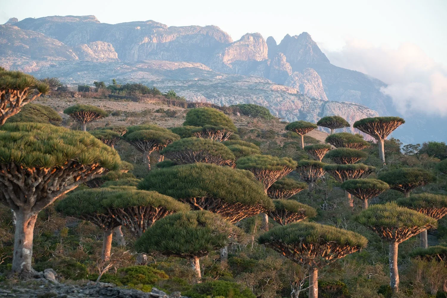 Beneath the shade of the iconic Dragon Blood trees, which spread their green canopies across hilltops like ancient queens, one feels transported to a realm of fantasy. From their trunks flows a deep red sap — once prized for its mythical powers. These trees symbolize the deep bond between the people and the island’s nature. The inhabitants speak their own Socotri language and live in harmony with their land’s gifts. In Socotra, the roar of waves mingles with the whistle of monsoon winds across caves and mountains, while the breeze carries the scent of frankincense and aloe drifting among the rocks.